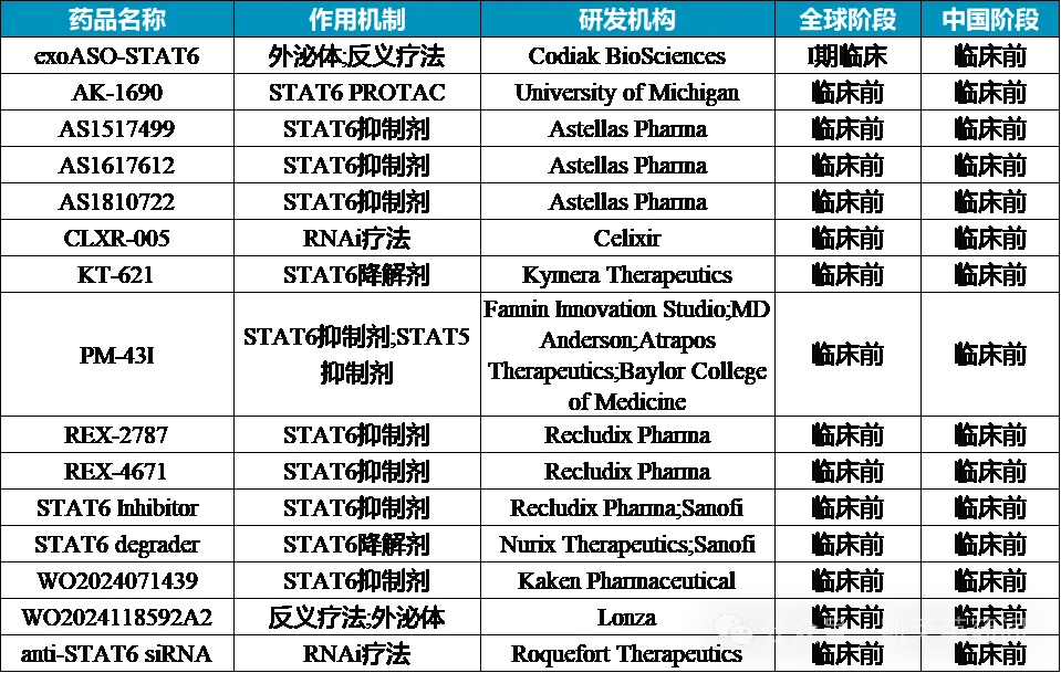 据不完全统计,目前在研的STAT6药物约十余种。