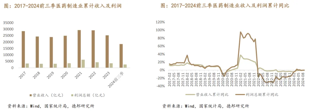 据德邦证券口径,今年前三季度整体医药工业营收微增0.2%,利润增长仍旧是在水面之下,为-0.4%,这还是在一个去年低基数的基础之上。这和本轮五年计划里关于医药行业的篇幅中提到的“维持9%的增速”有着较大的出入。