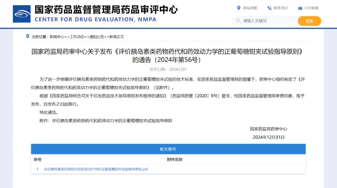 2024年12月31日,《评价胰岛素类药物药代和药效动力学的正葡萄糖钳夹试验指导原则》(以下简称“指导原则”)正式由国家药品监督管理局药品审评中心(CDE)发布。此项成果是我国医药产业相关方主动发挥力量,为加快完善我国药品技术指导原则体系做出贡献的里程碑示例。