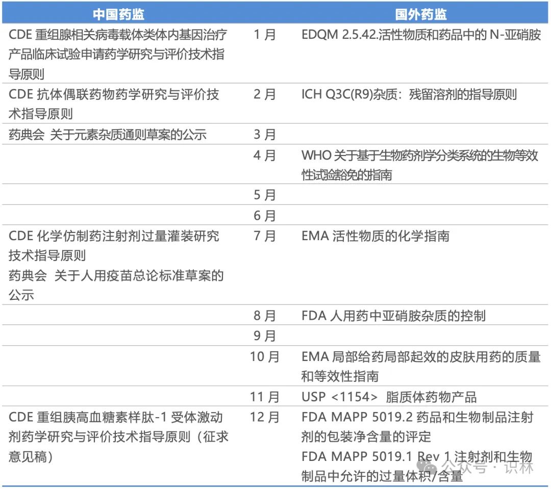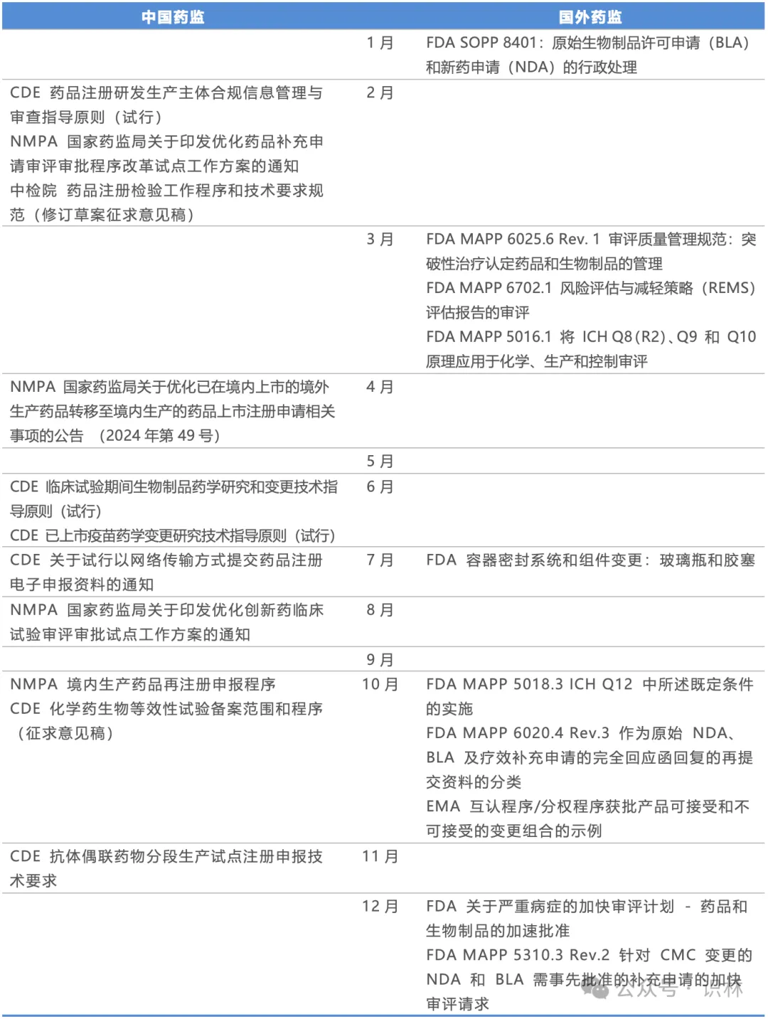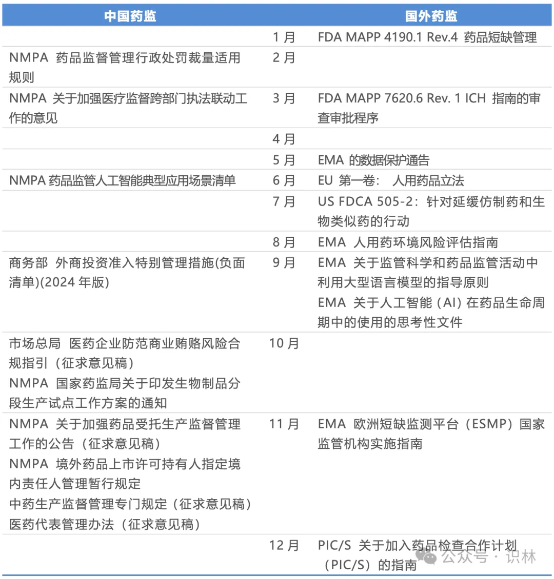 以上图表和简要分析,并非严谨学术研究,仅从识林视角,为大家回顾2024制药业法规指南全景提供一个参考。2025年,识林将一如既往关注来自更多机构,涵盖更完整主题的法规指南。