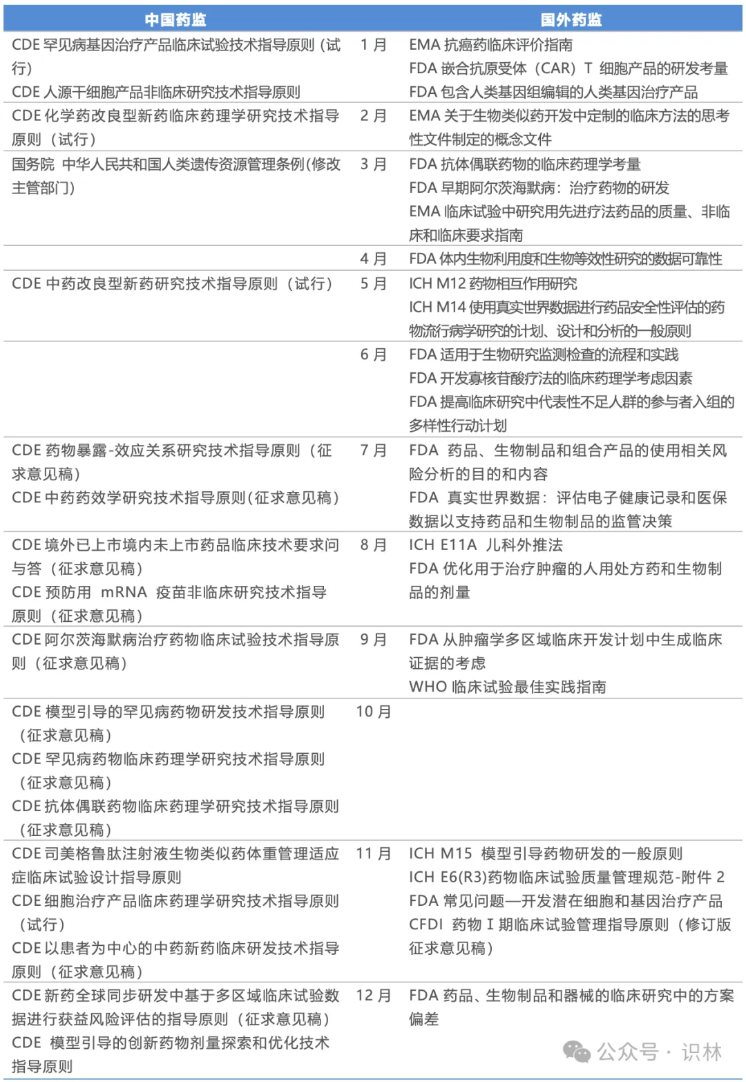表2. 中外药监年度重点发布概览:早期研发与临床