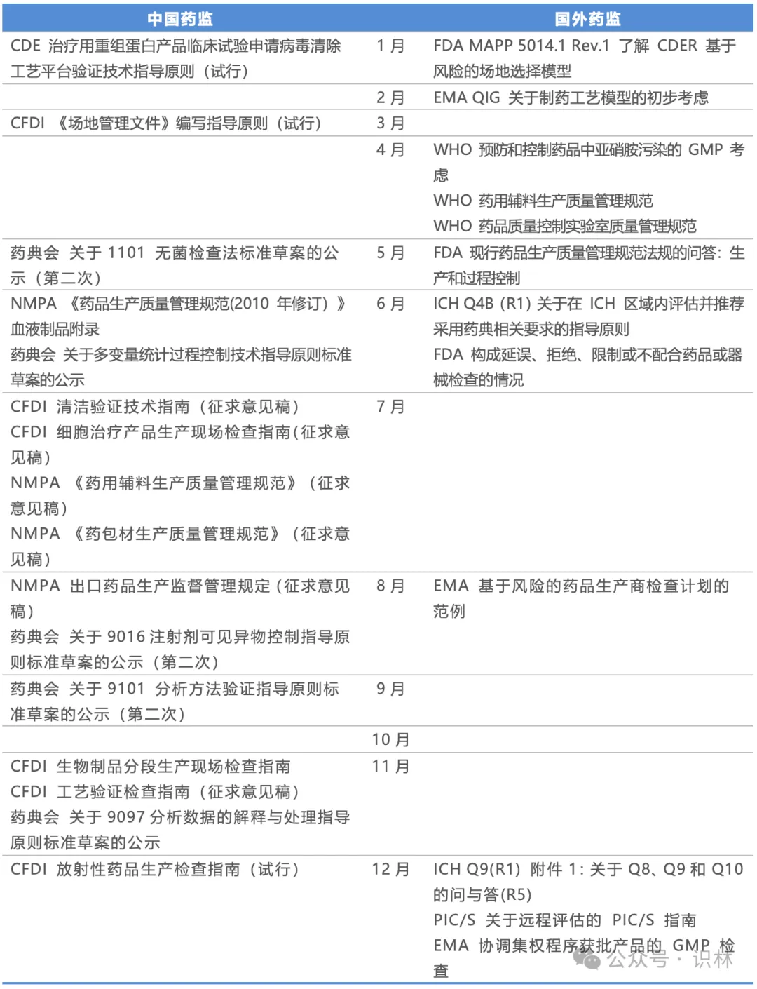 上文提到受托生产监管和生物制品分段广受关注,“能不能做”的问题总是特别牵动人心,但国内药监也发布了大量“怎么做”的质量管理指导性文件,包括工艺验证、清洁验证、细胞治疗和放射性药物的检查、分段检查指南(配合生物制品分段检查的新政策)、辅料和包材的GMP等等。无论A证B证还是C证,能够切实保障药品质量、且经得起检查的质量管理体系总是基本功。
