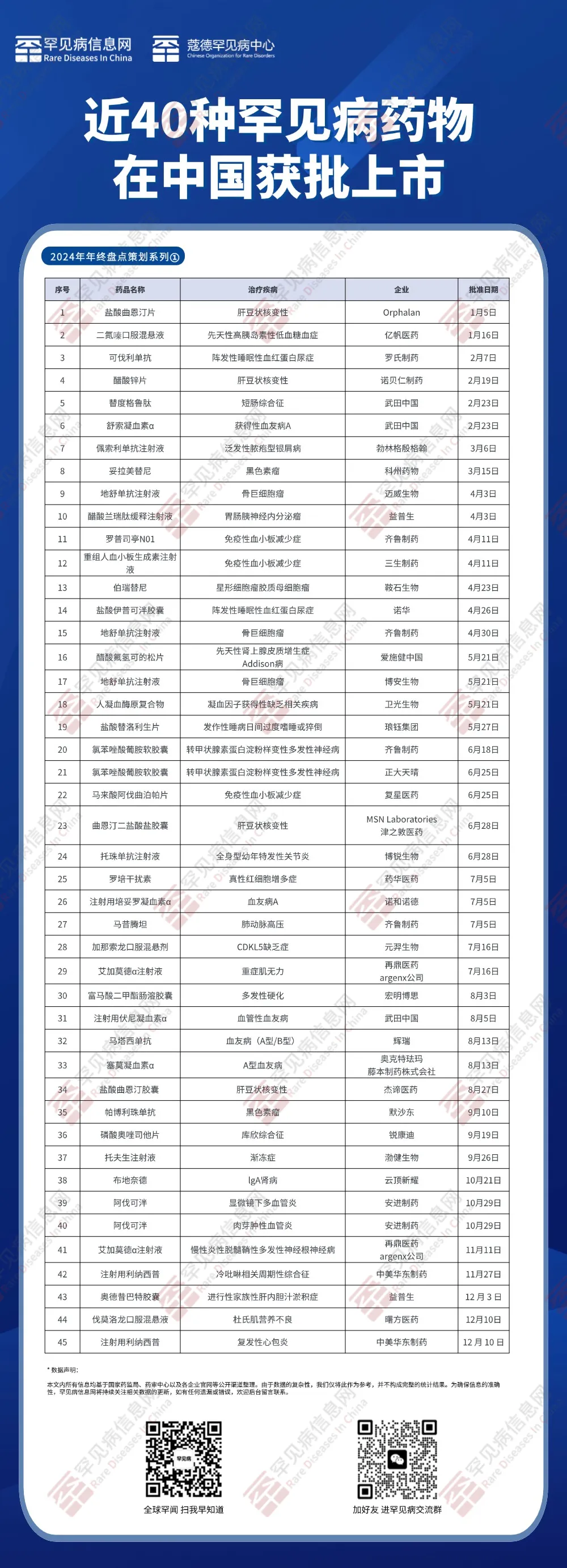 本文内所有信息均基于国家药监局、药审中心以及各企业官网等公开渠道整理。由于数据的复杂性,我们仅将此作为参考,并不构成完整的统计结果。为确保信息的准确性,罕见病信息网将持续关注相关数据的更新,如有任何遗漏或错误,欢迎后台留言联系。