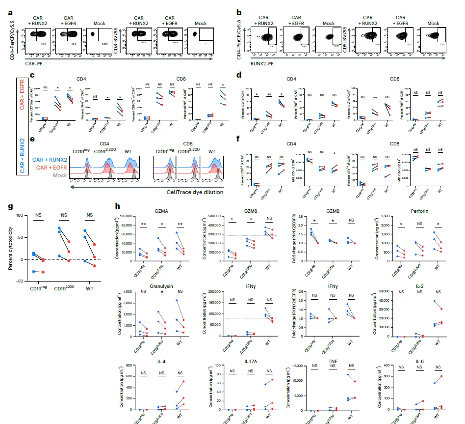 RUNX2过表达增强人CD4和CD8 CAR-T细胞的体外功能(来源:Nature Immunology)这些研究结果表明,RUNX2过表达是一种增强人类CAR-T细胞疗法的潜在策略,揭示了RUNX2在改善CD8和CD4 CAR-T细胞功能中的作用。研究者们认为,这些发现可能会帮助实现CAR-T细胞疗法更加精确的工程改造,使它们更有效地对抗癌症,包括用于实体瘤治疗。