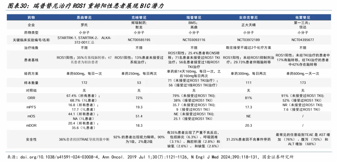 BMS/再鼎医药的瑞普替尼是其中一个选择,其二期研究显示其治疗初治患者mPFS达35.7个月,优于NCCN指南中两个一线推荐方案恩曲替尼和克唑替尼。