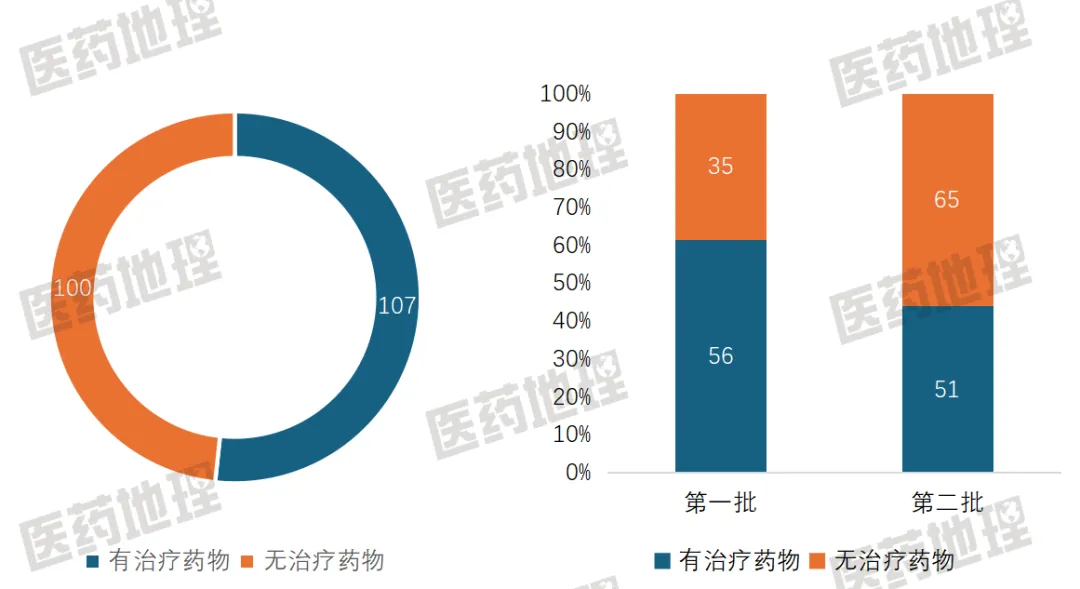 图:两批罕见病目录疾病中国是否有治疗药物占比