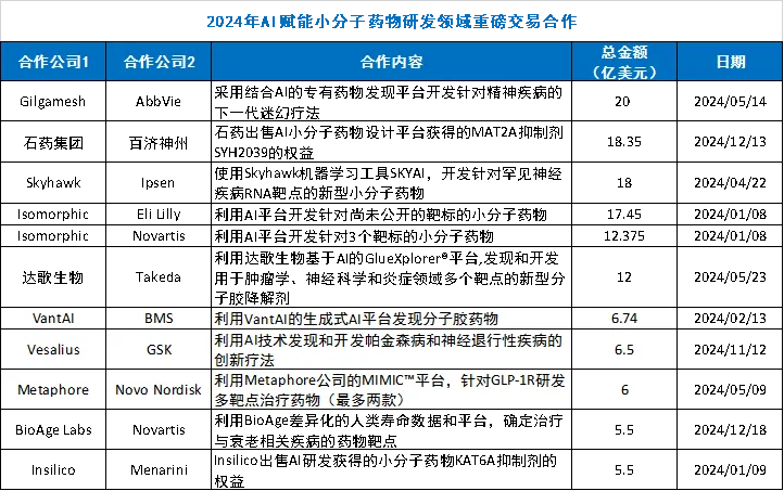 与此同时,医药巨头也在加速布局AI。礼来和诺华分别与英国公司Isomorphic达成总额高达30亿美元的合作协议,目标是利用AI技术开发针对未公开靶点的小分子药物。