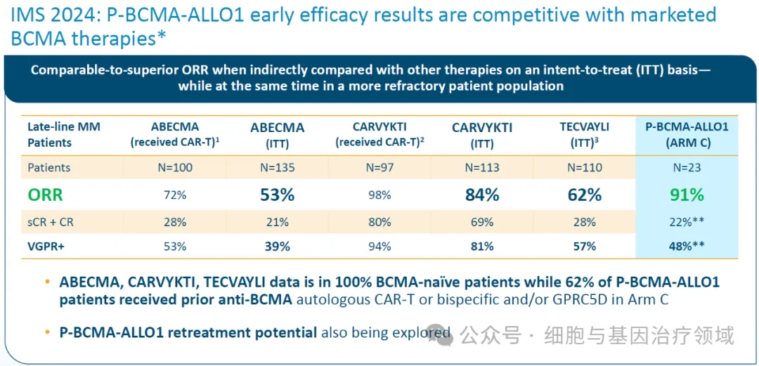 疗法 P-BCMA-101相比,在抗肿瘤功效方面具有相似或优越的性能。在同种异体制造过程中加入专有的“增强分子”("booster molecule"
