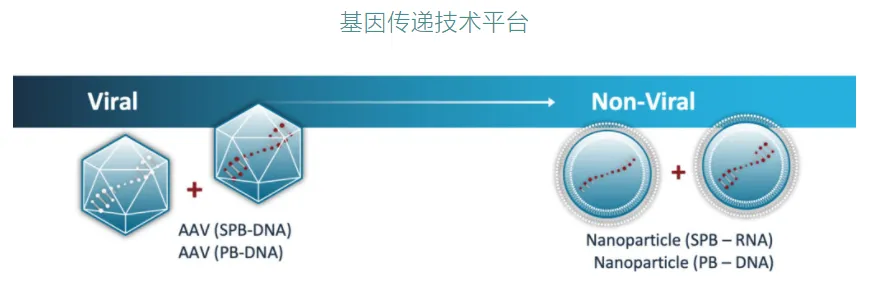 图注:Poseida公司公司开发了多个基因传递技术平台。这包括 AAV 和纳米粒子,使 PiggyBac 和 Cas-CLOVER 等工具能够被递送到体内,从而可以治疗多种疾病。