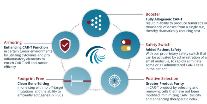 该公司的核心技术包括非病毒 piggyBac® DNA 修饰系统、Cas-CLOVER™ 位点特异性基因编辑系统、纳米颗粒和基于AAV的基因转导技术。从目前的技术来看,生产CAR-T疗法的主要方法基于病毒,而piggyBac系统不使用病毒,就能将CAR分子运送到T细胞内,可弥补当前病毒载体的一些缺陷。
