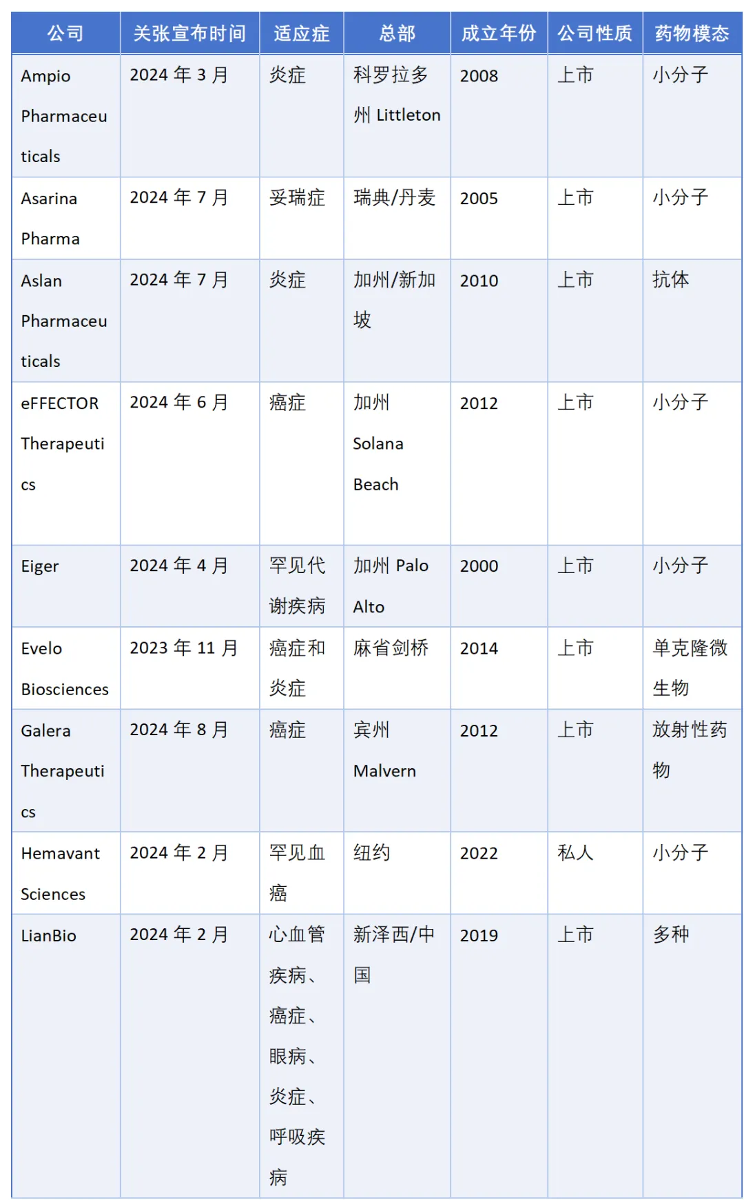2024年有多家生物科技公司停止运营,通常是公司自主决定暂时或永久停止其业务活动。