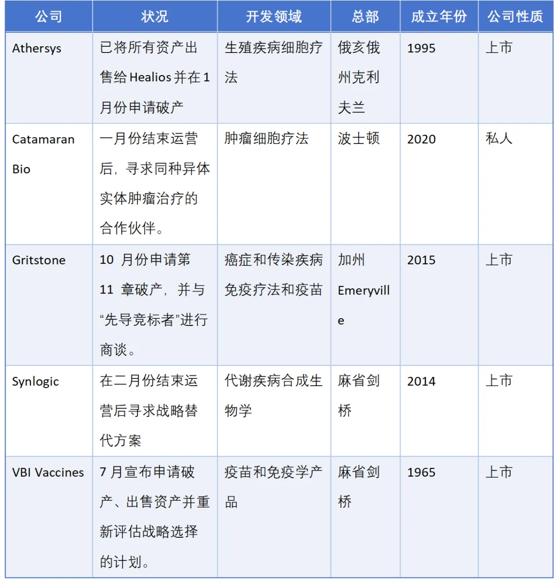 2024年已经有几家生物科技公司申请了破产。申请破产并不等同于停止运营,但通常能昭示出公司未来的命运。