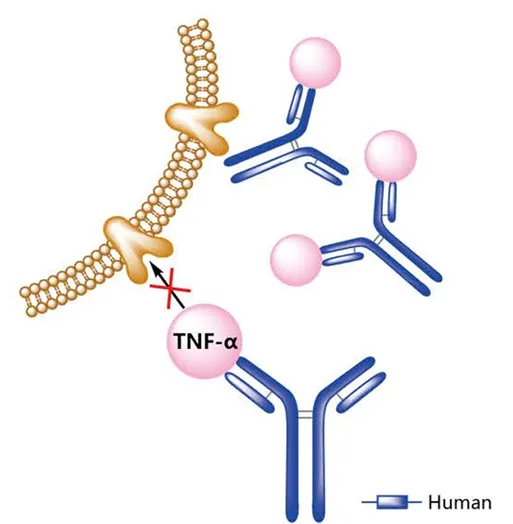 适应症:类风湿性关节炎、幼年特发性关节炎、银屑病关节炎、强直性脊柱炎、克罗恩病、溃疡性结肠炎、斑块状银屑病、化脓性汗腺炎和葡萄膜炎。