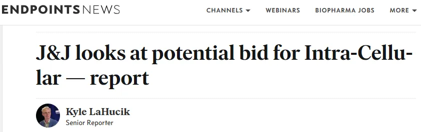 1月13日,据外媒报道,强生正在考虑收购中枢神经系统(CNS)制药公司Intra-Cellular Therapies,后者市值约为100亿美元,知情人士称此项收购交易最快有可能在本周达成。