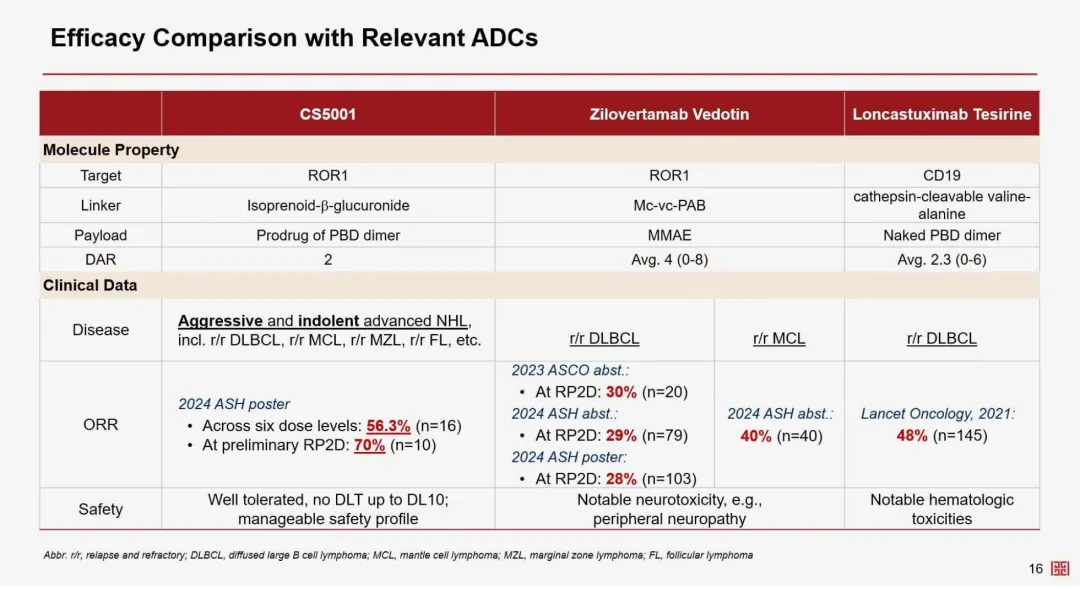 2024年上半年首次实现盈利的基石药业,也在同一时期公布了旗下ROR1 ADC产品CS5001,单药治疗晚期淋巴瘤的临床安全性和疗效数据。