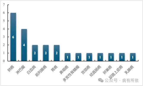 图1 抗肿瘤药物获批新适应症癌种分布