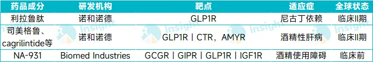 Biomed Industries 计划对 NA-931 进行治疗酒精使用障碍的探索研究,目前该适应症在临床前阶段。NA-931 是一款新型的四靶点激动剂,它能够同时激活 GLP-1、GIP、GCG 和 IGF-1 四种受体。多靶点激动剂可能还能够减少药物使用中的副作用,从而提供更加全面的治疗策略。