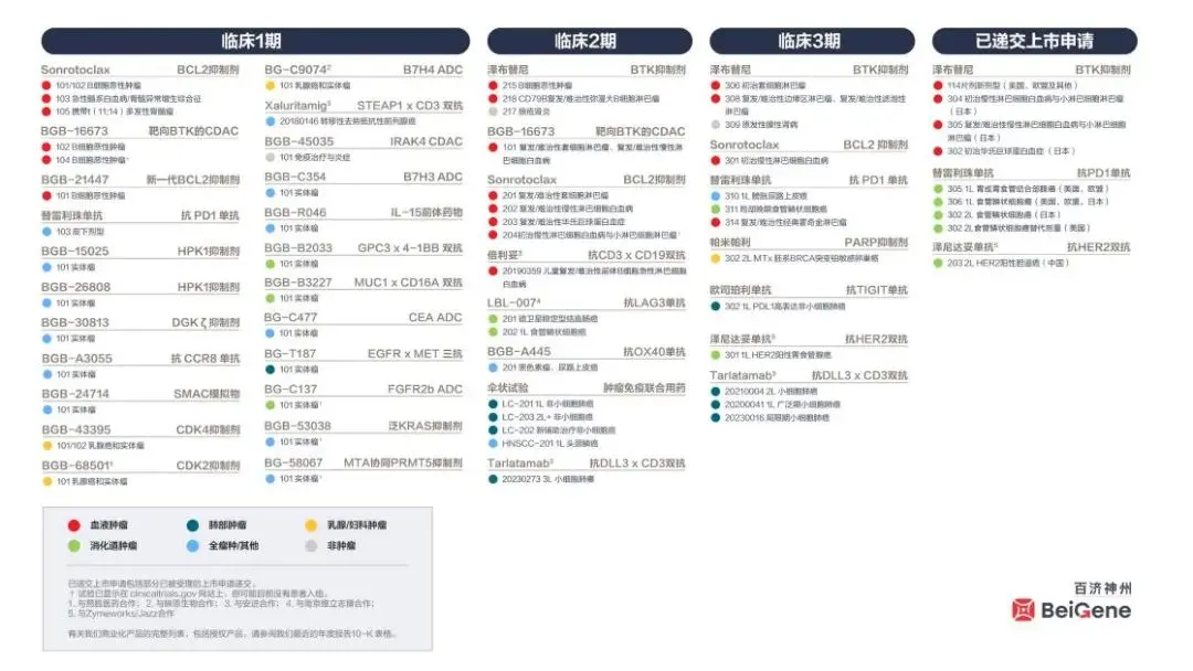 百济神州全球临床开发管线