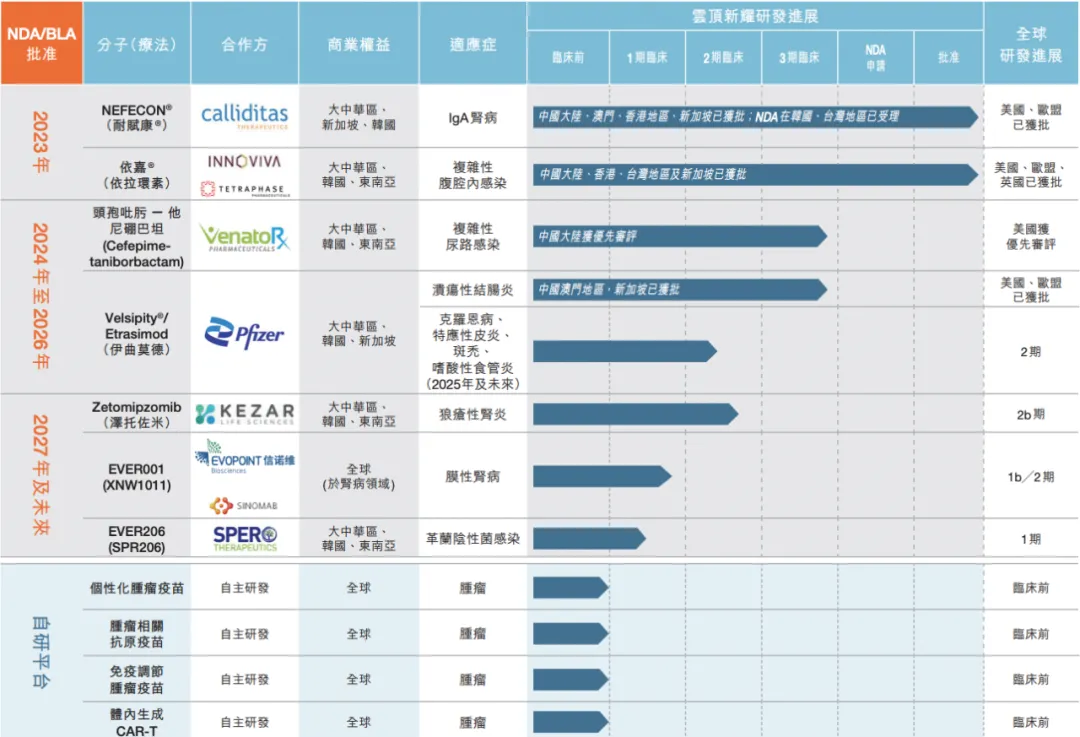 云顶新耀临床开发管线