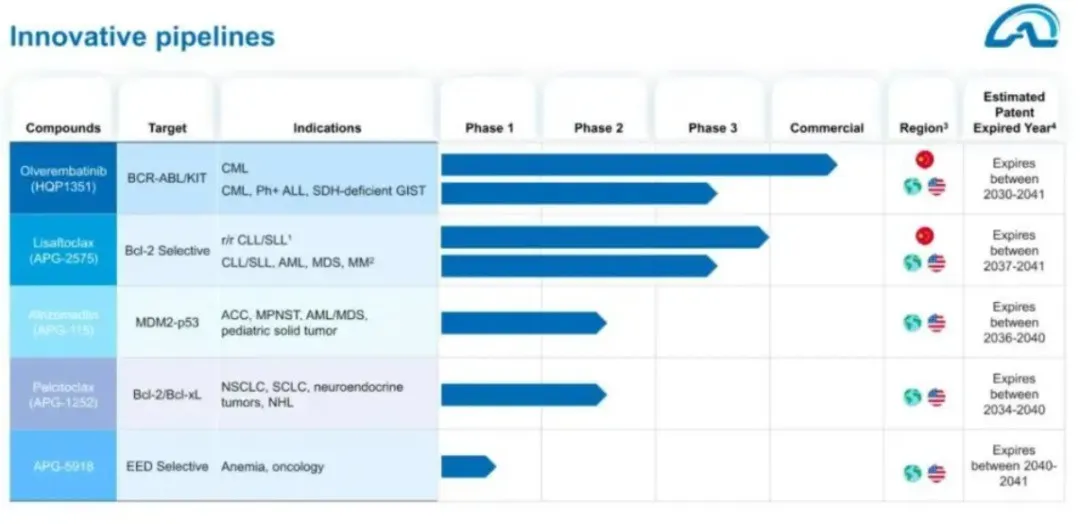 亚盛医药建立了丰富的创新药产品管线,包括抑制Bcl-2、MDM2-p53 等细胞凋亡通路关键蛋白的抑制剂;新一代针对癌症治疗中出现的激酶突变体的抑制剂等。