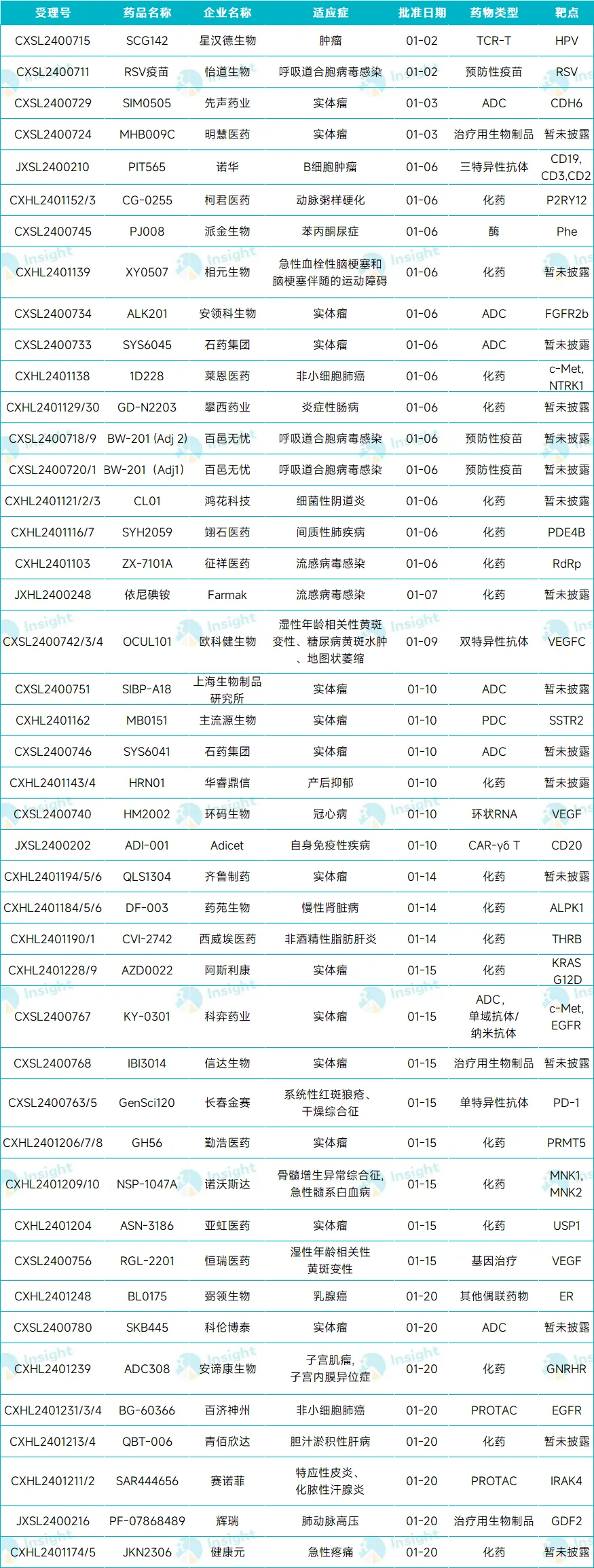 1 月首次获批 IND 的新药