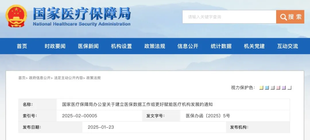 国家医疗保障局办公室关于建立医保数据工作组