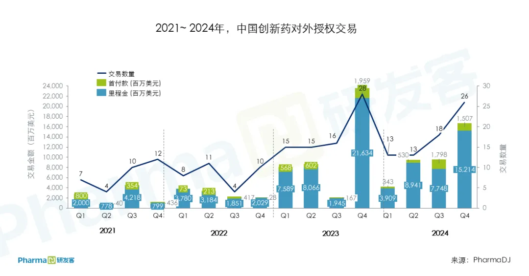 41.8亿美元的首付款也超过同期公布的融资总额32.9亿美元,对外授权正成为中国创新药企最重要的替代融资方式。