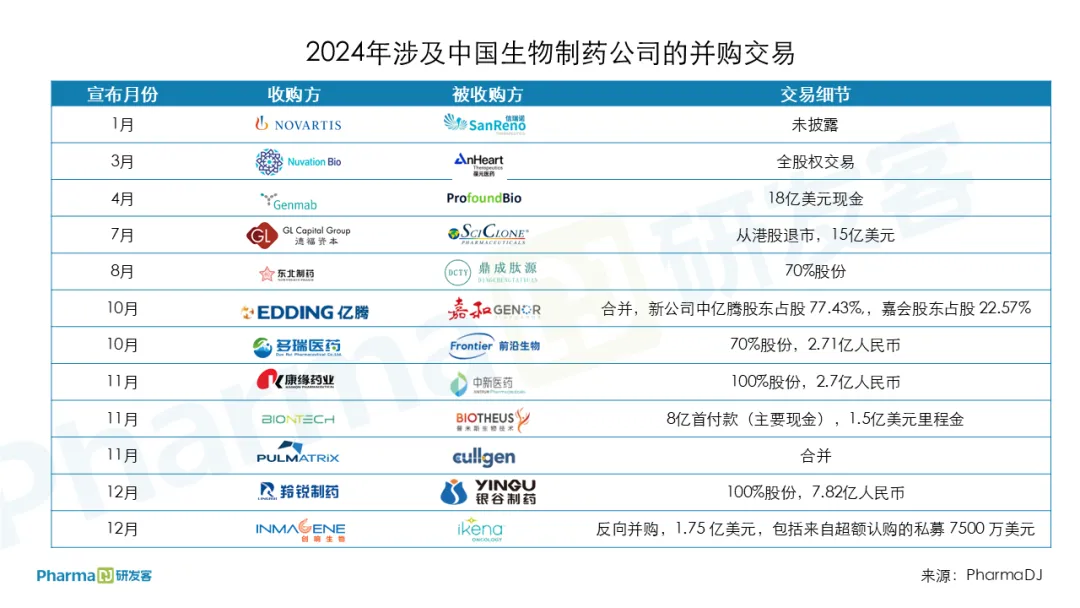 2023年底,阿斯利康宣布收购亘喜生物,成为第一起跨国药企并购中国生物技术公司的交易。去年,类似的交易达到了5起。其中,Genmab以全现金交易收购普方生物,交易金额达到了18亿美元。