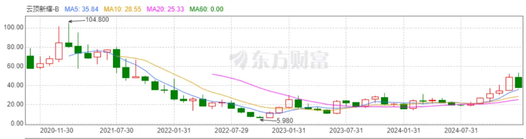 图1. 云顶新耀股价月度K线图,来源:东方财富网