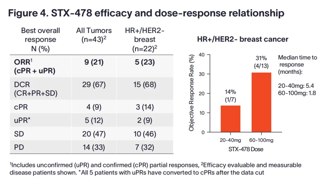 安全性层面,STX-478耐受性良好,并未发现≥3级PI3Kα野生型毒性(高血糖、腹泻和皮疹),没有患者因不良事件而停药,这也意味着的STX-478“差异化设计”策略取得了初步的验证。
