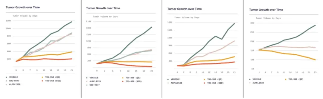 Totus称TOS-358是一款高特异性的PI3Kα抑制剂,在临床前在结直肠癌、乳腺癌、肺癌、胃癌等肿瘤模型中展现了出色肿瘤生长抑制。同时,其1期临床中TOS-358对PI3Kα的靶点作用率达到95%,且观察到未经确认的CR。目前Totus启动了一项TOS-358的扩展研究,针对乳腺癌、子宫内膜癌、尿路上皮癌和头颈癌。