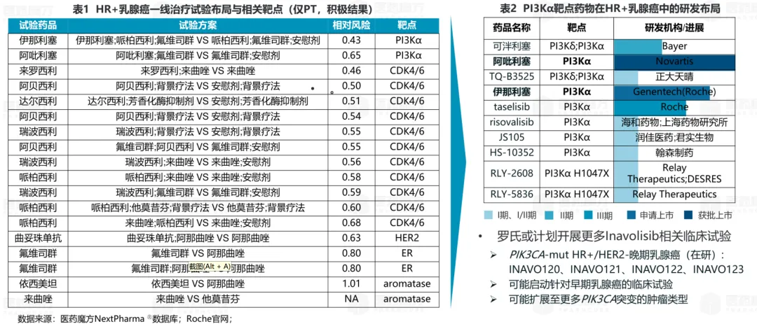 年初,罗氏宣布PIK3α抑制剂Inavolisib三联疗法(联合哌柏西利、氟维司群)在内分泌耐药后HR+/HER2-局部晚期或转移性乳腺癌患者的潜在一线治疗三期INAVO120研究中取得成功,显著延长了晚期HR+乳腺癌患者PFS和OS。