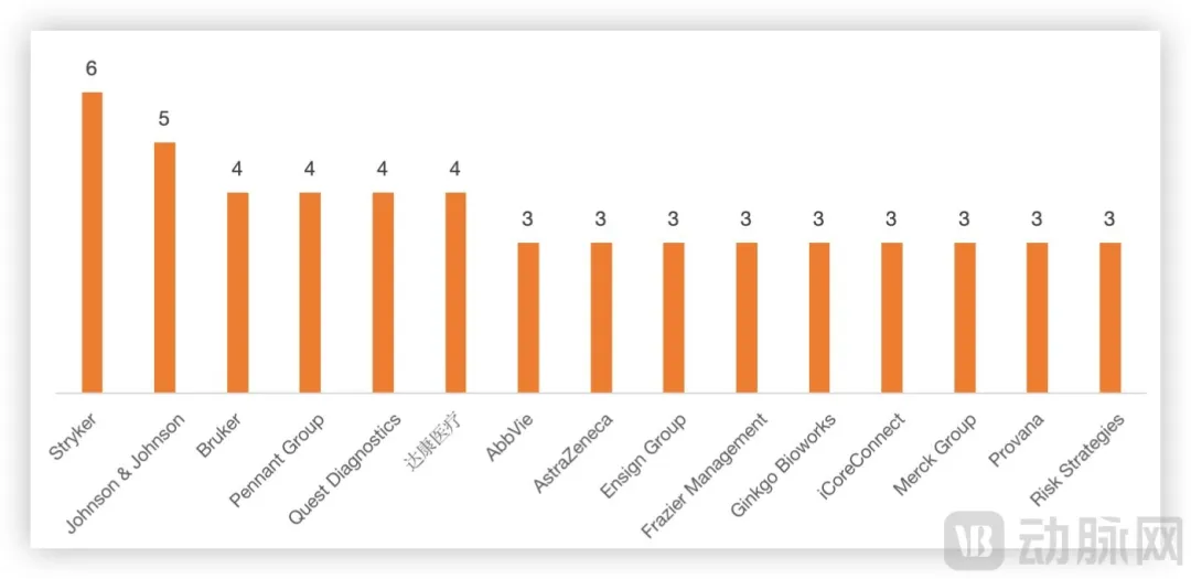 像全球骨科及医疗器械龙头的史赛克出手了6次,紧随其后的强生公司(Johnson & Johnson)也在2024年进行了多起并购,涉及心血管疾病治疗器械开发商(Shockwave Medical)、基因疗法开发商(Proteologix)等多个领域。这些并购行为显示出跨国企业通过整合全球资源,巩固他们在医疗技术领域的领先地位,进一步拓展市场份额的战略意图。