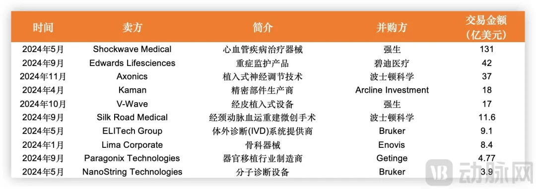 2024年,全球医疗器械行业并购交易超100起,金额超300亿美元。