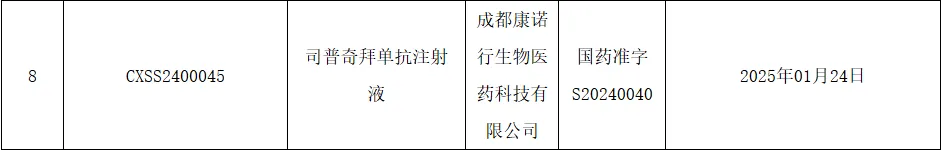 司普奇拜单抗是康诺亚自主研发的一种针对白介素 4 受体α亚基(IL-4Rα)的高效、人源化抗体。2024 年 9 月首次被 NMPA 批准用于治疗外用药控制不佳或不适合外用药治疗的成人中重度特应性皮炎。2024 年 12 月又被批准新适应症,用于治疗慢性鼻窦炎伴鼻息肉。
