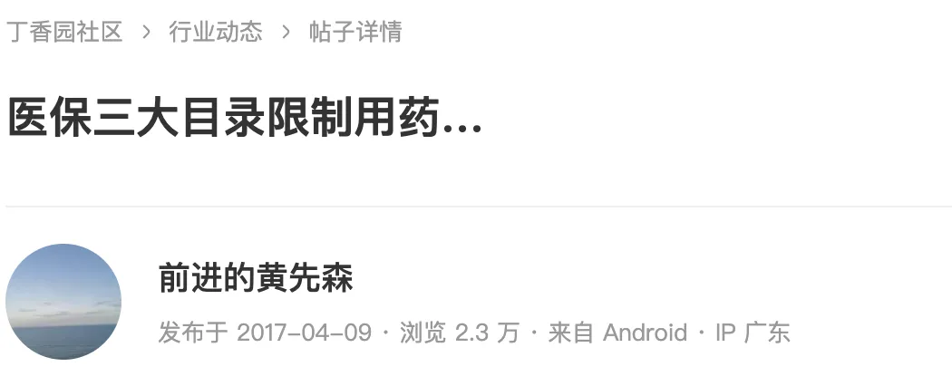 曾有用户在丁香园社区发帖称,自己所在省开始限制用药,许多药物都有了特定的使用场景。