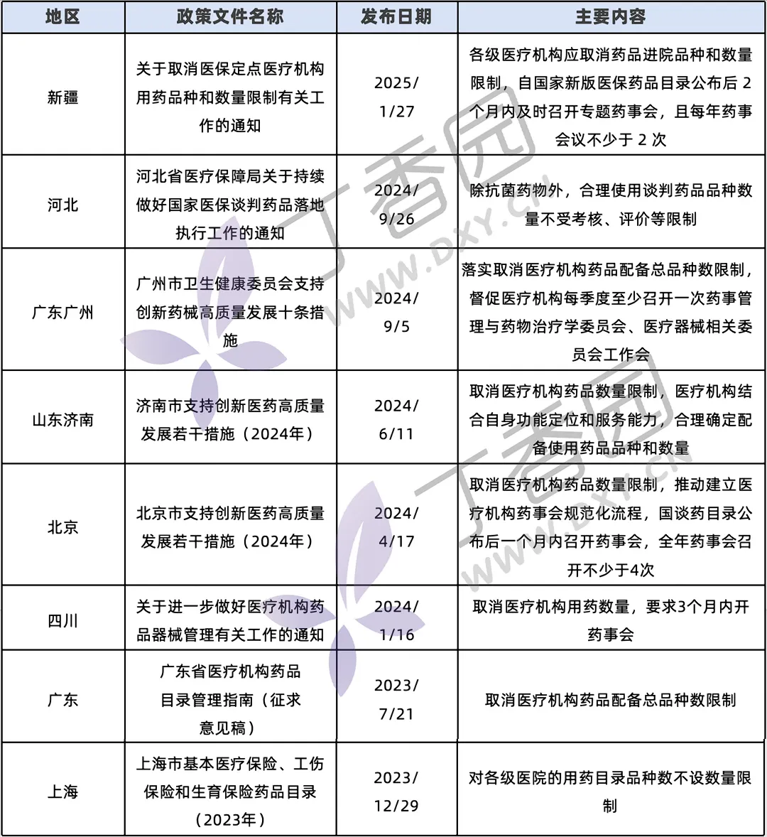 截止目前,已有 8 个地区发文宣布取消医疗机构用药数量限制。