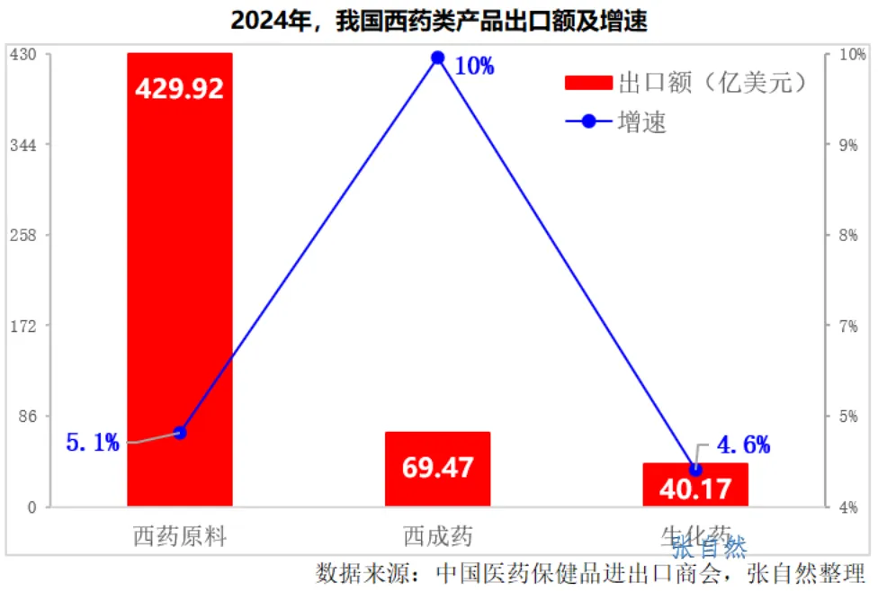 2024年,我国西药类产品出口539.56亿美元。