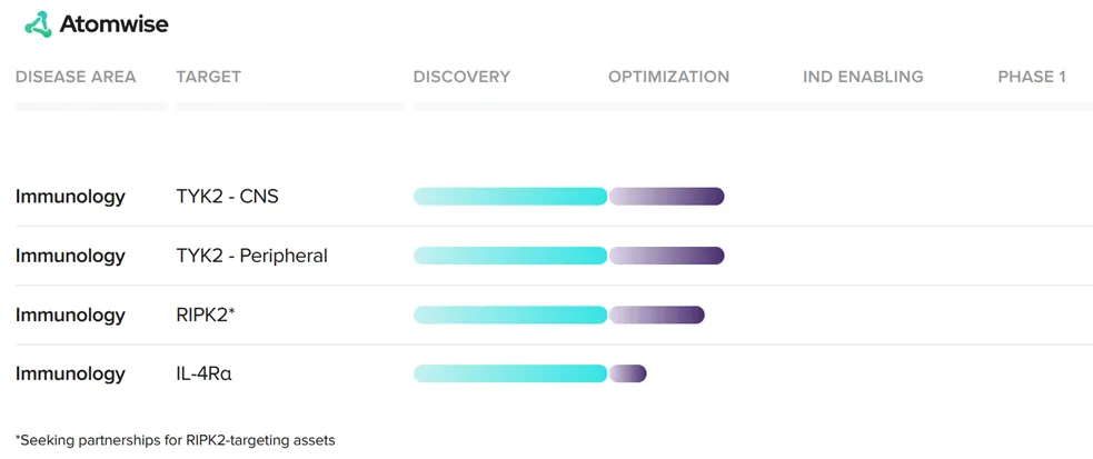 图1. Atomwise的研发管线,来源:Atomwise官网