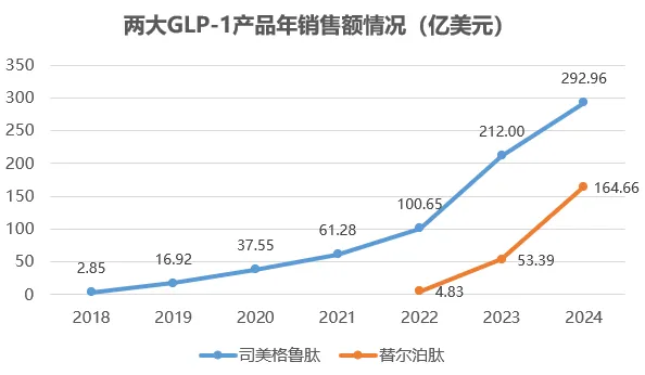 当然,GLP-1市场的强势扩容也有替尔泊肽的助力,其与司美格鲁肽之间的巅峰对垒极具看点。