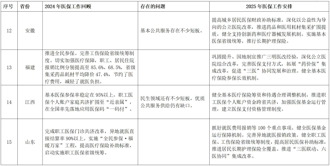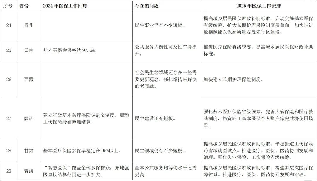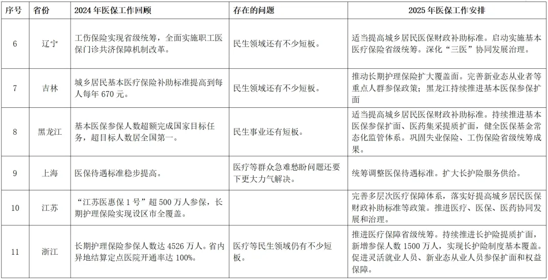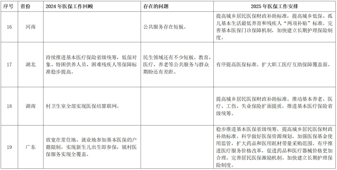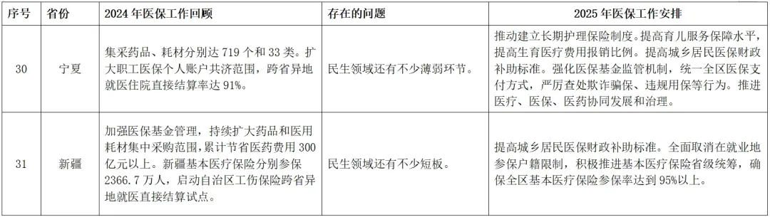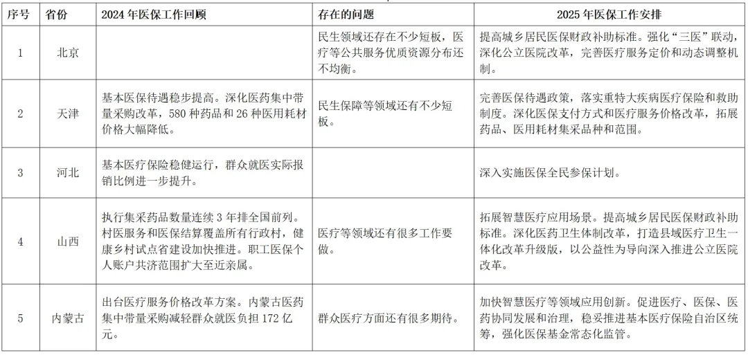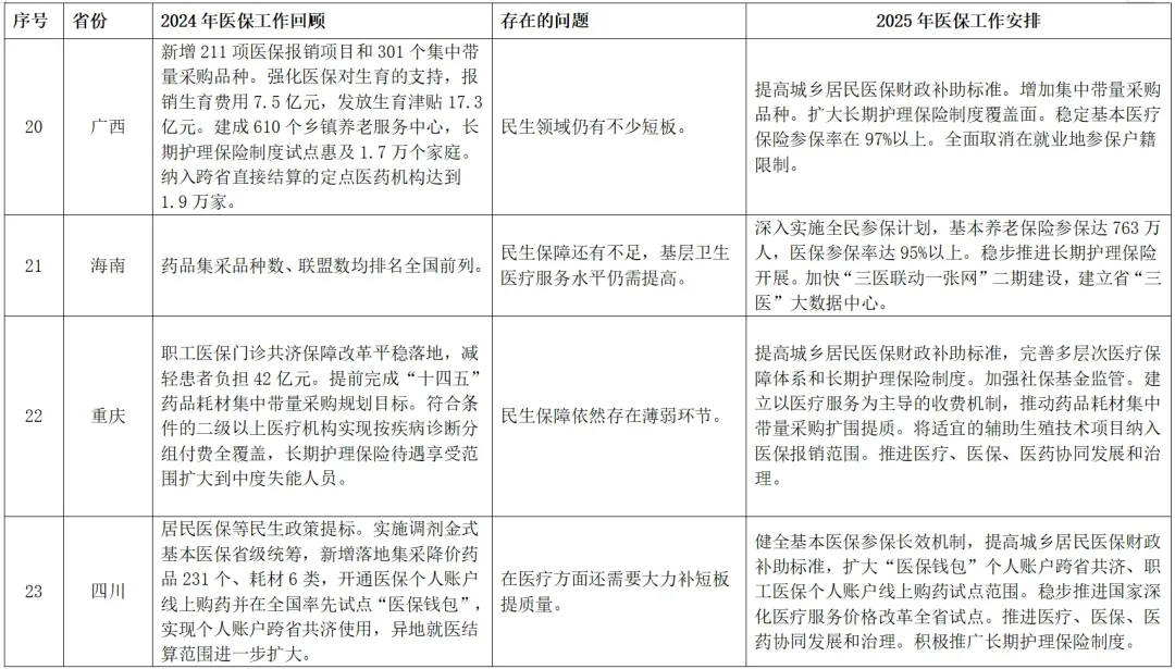 附表:全国各省份2025年政府工作报告中的医疗保障相关内容