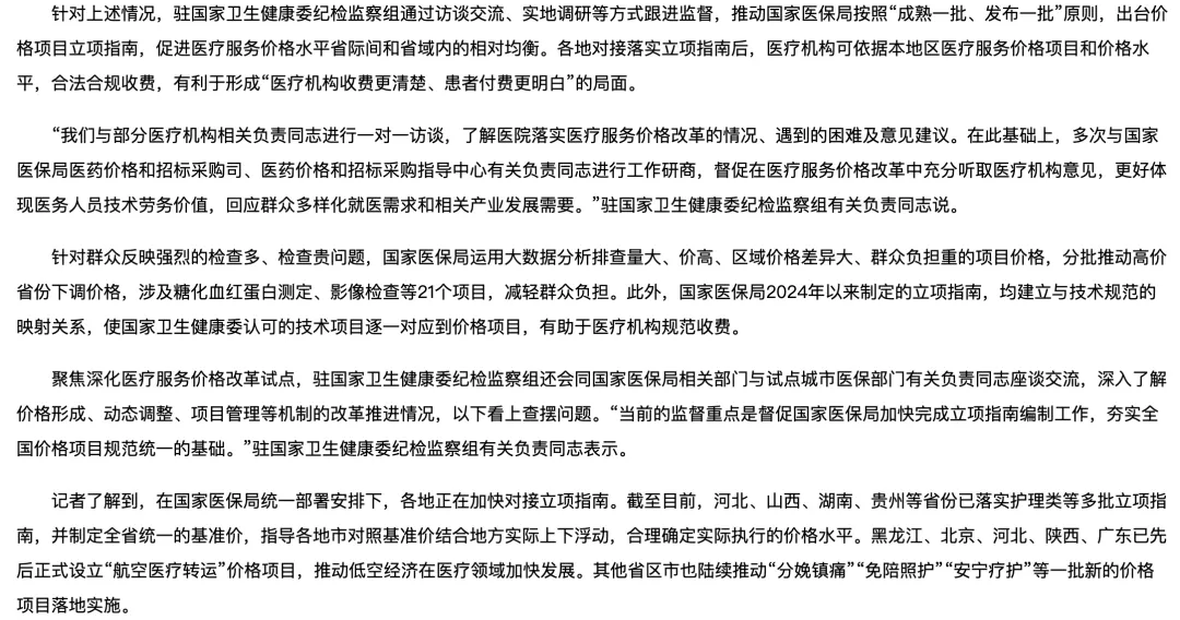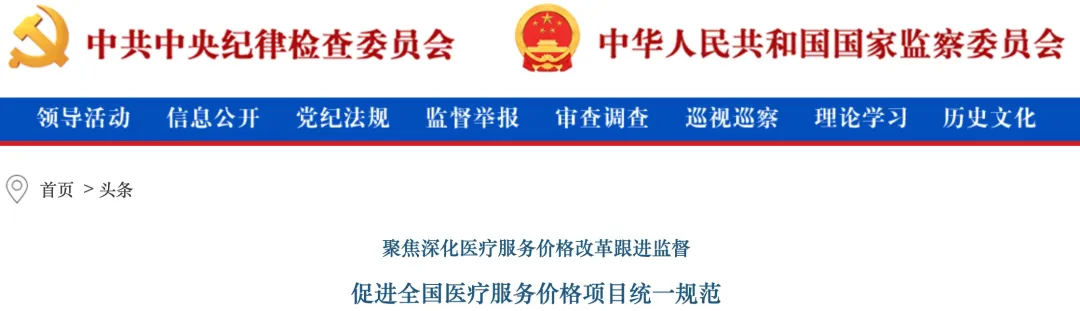 2月12日,中纪委官网发布题为《聚焦深化医疗服务价格改革跟进监督 促进全国医疗服务价格项目统一规范》的头条文章(完整附文末)。