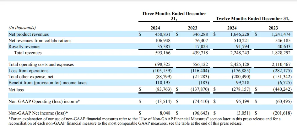 产品收入方面,Alnylam在2024年产品销售额为16.46亿美元,同比增长33%,主要是因为 AMVUTTRA 销售增长,以及 GIVLAARI 和