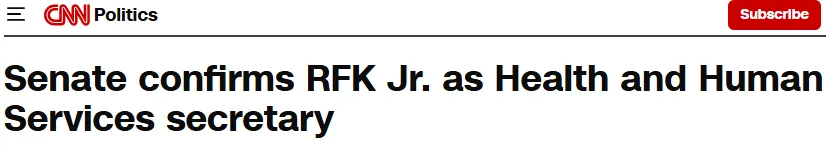 据CNN 2月13日报道 周四,美国参议院投票确认小罗伯特·F·肯尼迪出任卫生与公众服务部(HHS)部长,这对总统川普而言是一场胜利。肯尼迪因其对疫苗和公共卫生政策的争议性观点而遭到了严格审查。