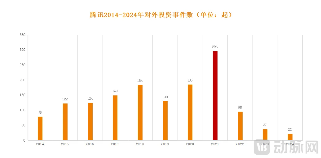 图1.腾讯2014-2024年对外投资事件数(数据来源:IT橘子)