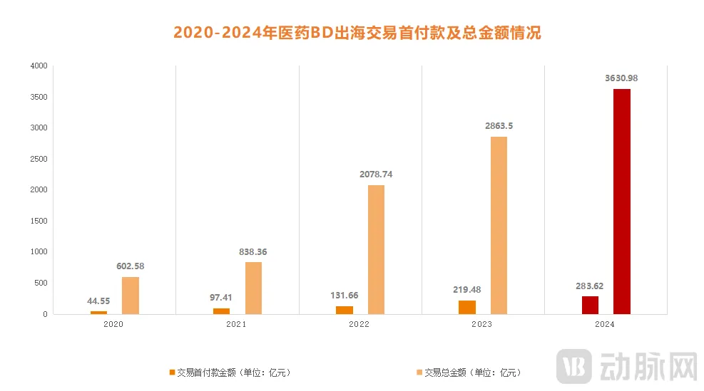 图5.2020-2024年医药BD出海交易首付款及总金额情况