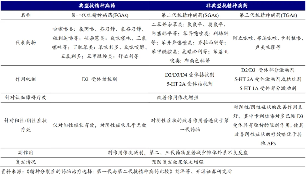 图1 三代抗精神分裂症药物图片来源:开源证券研报
