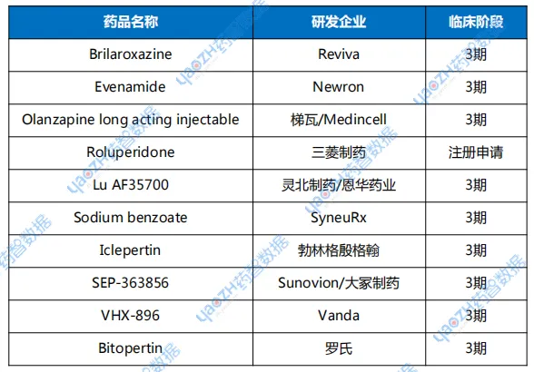 表1 全球进入注册申请和临床3期阶段的抗精神分裂药物(部分)