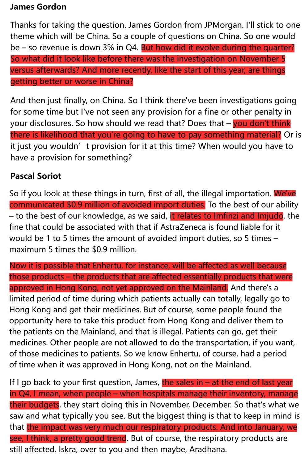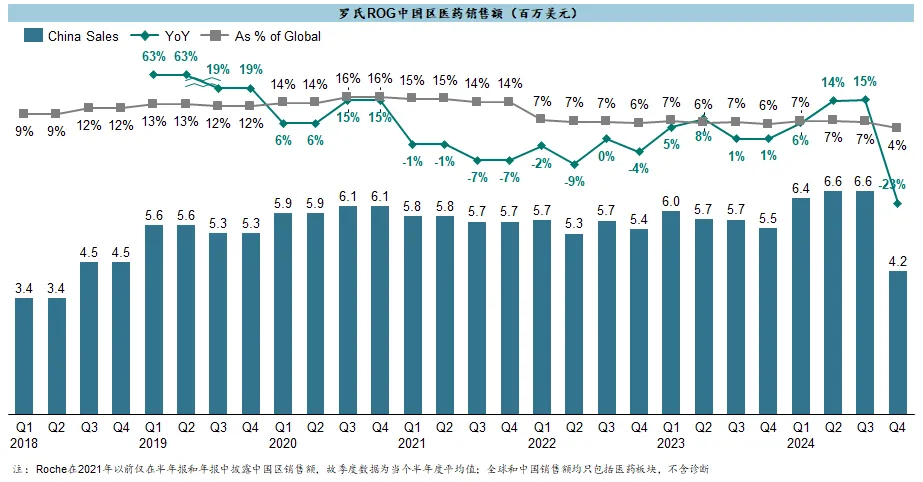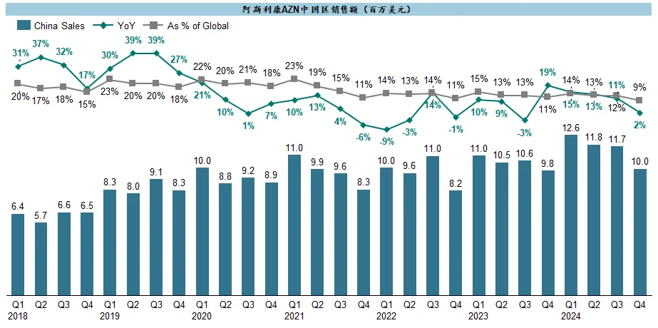 然而2024年11月又一道晴天霹雳,中国区高管被调查,虽然公司反复声明只是几个产品曾经在香港获批而未在大陆获批的时间段涉及违规用药,且四季度只是常规的医院预算管理所导致的影响,但同比增速下滑和占全球比重首度跌破10%,这都结结实实地引起了市场的担忧。