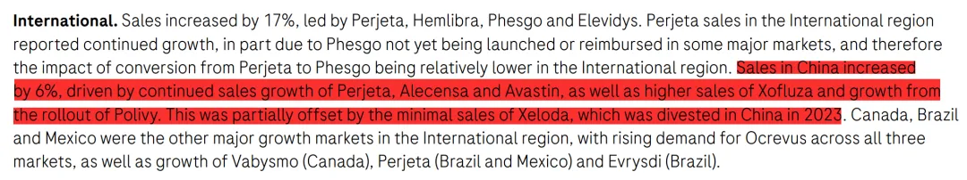罗氏制药在中国区的命运比全球更加凄凉步,随着Herceptin、Avastin、Rituxan等上个时代的重磅产品逐渐老去,中国区的增长引擎也随之熄火;而在海外多少能挽点尊的新品种,如Vabysmo和Phesgo等,在中国要么批得晚、要么还没进医保,对销售额贡献有限,导致中国区占全球比重从高点的15%一路下滑到现在只有5%左右了。